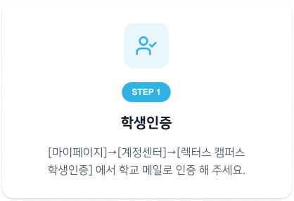 캠퍼스 소속 대학(원) 재학생이라면 누구나 이메일 인증을 통해 혜택을 제공 받을 수 있습니다