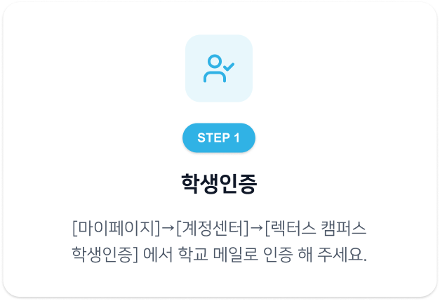 – 본 혜택은 렉터스 캠퍼스 인증 대학(원)생에게만 자동으로 부여됩니다.